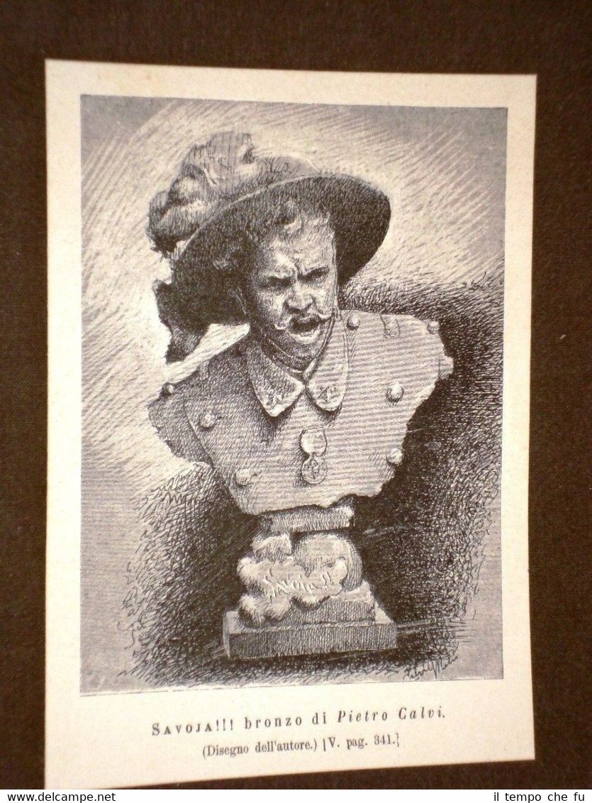 Rara Incisione Estratta da Rivista d'epoca del 1886 Savoja o Savoia! Bronzo di Pietro Valvi del 1886 II1886-048T Cm 12,00 x 16,00 Qualora vogliate delle scansioni migliori contattateci, soddisferemo ogni vostra richiesta. Paypal Carta di credito Bonifico bancario Accuratamente adagiate su un cartoncino e protette da pellicola trasparente rigida il tutto viene inserito dentro plico di adeguate dimensioni per proteggerne l'integrità