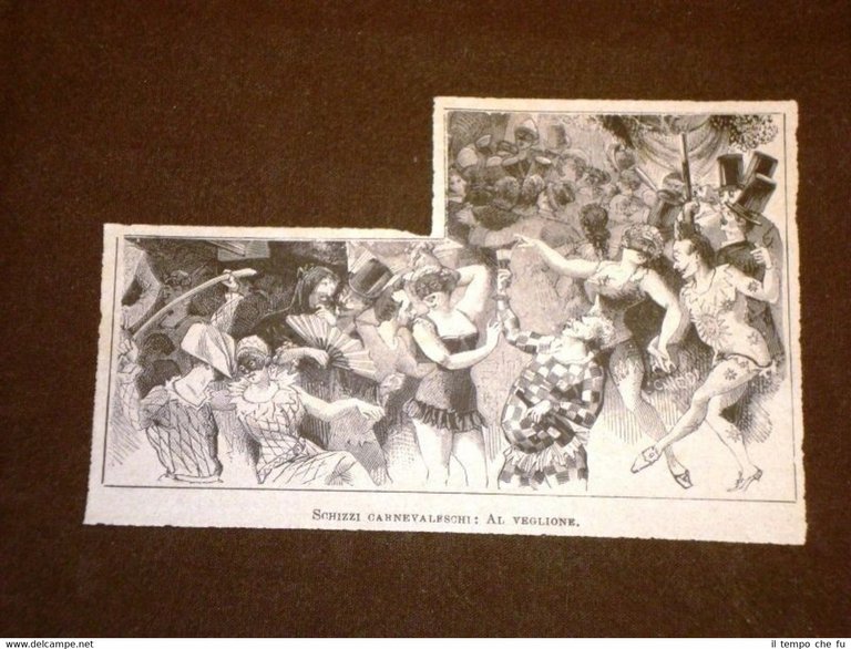 Rara Stampa Estratta da Rivista d'epoca di fine '800 Schizzi carnevaleschi Al veglione di Carnevale IP1864-004T Dimensioni Cm 15,50 x 10,00 Qualora vogliate delle scansioni migliori contattateci, soddisferemo ogni vostra richiesta. Paypal Carta di credito Bonifico bancario Accuratamente adagiate su un cartoncino e protette da pellicola trasparente rigida il tutto viene inserito dentro plico di adeguate dimensioni per proteggerne l'integrità
