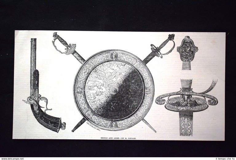 Rara incisione estratta da pubblicazione del 1851. .incisione che ha quindi oltre 167 anni! Scudo e armi, del signor Lepage Dimensioni Cm 24,00 x 12,00 ILN1851 - 35 Qualora vogliate delle scansioni migliori contattateci, soddisferemo ogni vostra richiesta. Paypal Carta di credito Bonifico bancario Accuratamente adagiate su un cartoncino e protette da pellicola trasparente rigida, il tutto viene inserito dentro plico di adeguate dimensioni per proteggerne l'integrità.