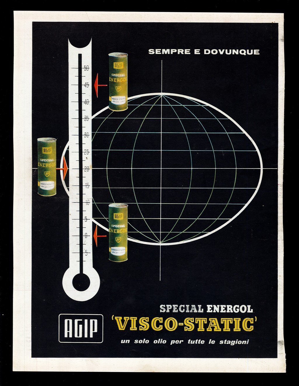 Autore: Mondadori. Luogo: Milano. Anno: [1955]. Tecnica: offset. Dimensioni: 32x25. Conservazione: buone. Foglio sciolto tratto da periodico anni '50, pagina pubblicitaria Agip