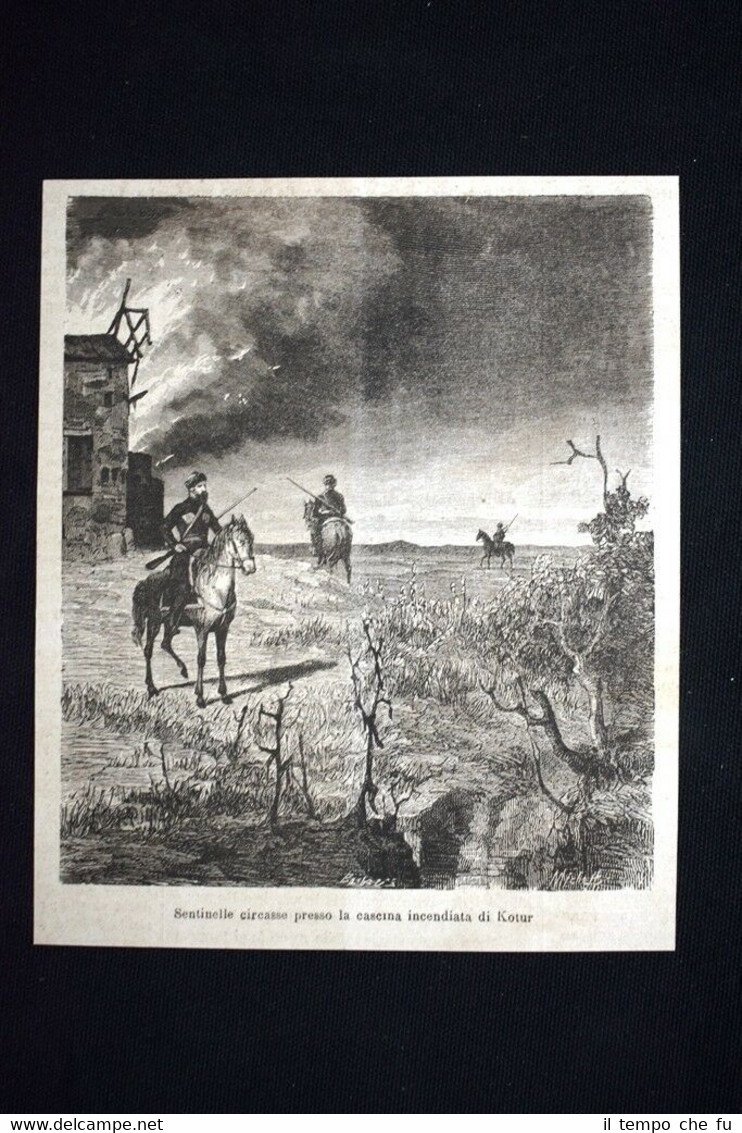 Sentinelle Circasse presso la cascina incendiata di Kotur Incisione del 1876