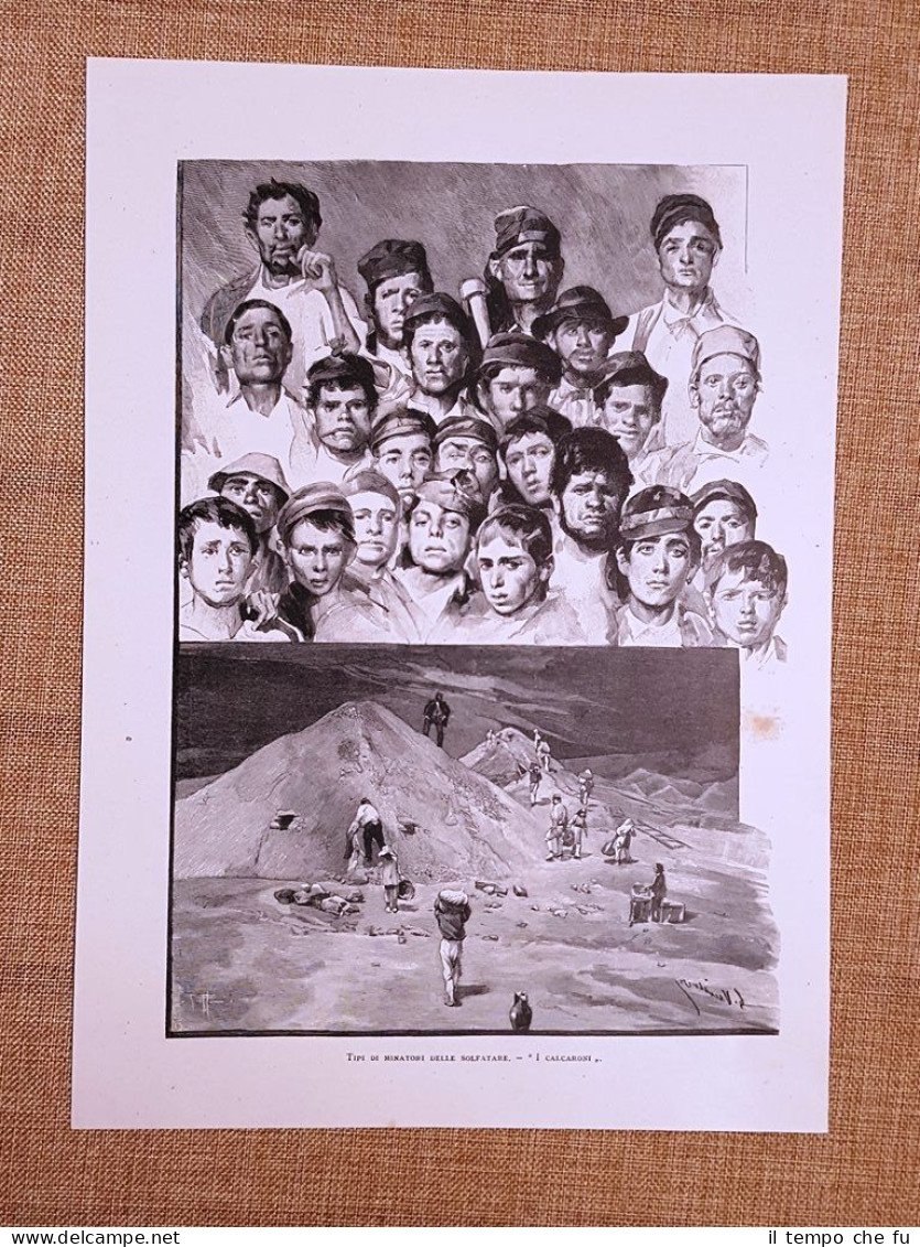 Sicilia 1897 Enna Castrogiovanni Minatori solfatare Carusi e calcaroni Vuillier Rara stampa estratta da pubblicazione del 1897 In Sicilia nel 1897 Enna o Castrogiovanni Tipi di minatori delle solfatare Carusi e calcaroniCodice articolo: SDI-038Dimensioni: Cm 21,00 x 29,00Estratta dalla rarissima opera "La Sicilia, impressioni del presente e del passato"Opera letteraria e grafica di Gastone Vuiller che elaborò, dal suo viaggio in Sicilia effettuato nella primavera del 1893, disegni definiti in ogni loro particolare e ben rispondenti alla realtàPubblicata dai Fratelli Treves di Milano nel 1897