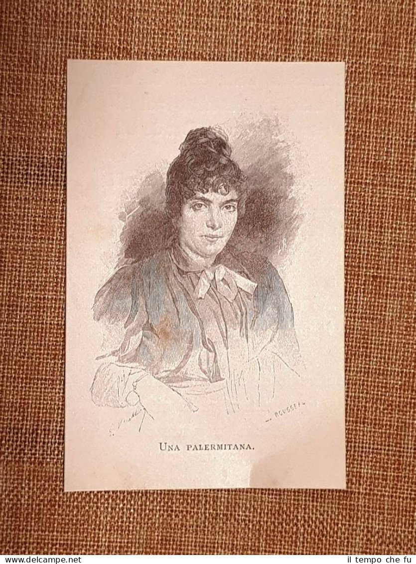 Sicilia nel 1897 Donna di Palermo o palermitana Moda e costume Gastone Vuillier Rara stampa estratta da pubblicazione del 1897 In Sicilia nel 1897 Donna di Palermo o palermitana Moda e costume Gastone Vuillier Codice articolo: SDI-043Dimensioni: Cm 7,00 x 11,00Estratta dalla rarissima opera "La Sicilia, impressioni del presente e del passato"Opera letteraria e grafica di Gastone Vuiller che elaborò, dal suo viaggio in Sicilia effettuato nella primavera del 1893, disegni definiti in ogni loro particolare e ben rispondenti alla realtàPubblicata dai Fratelli Treves di Milano nel 1897