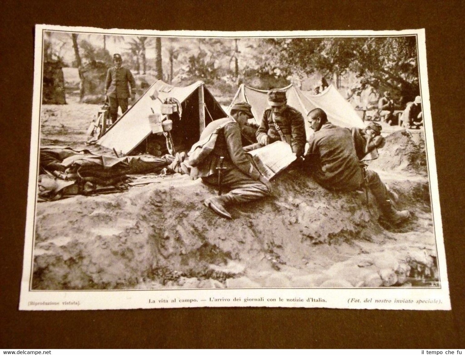 Rara Stampa Estratta da Rivista d'epoca del 1911 Spedizione d'Italia in Libia o Tripolitania nel 1911 La vita al campo Arrivo dei giornali dall'Italia II1911-052T Cm 23,00 x 17,00 Qualora vogliate delle scansioni migliori contattateci, soddisferemo ogni vostra richiesta. Paypal Carta di credito Bonifico bancario Accuratamente adagiate su un cartoncino e protette da pellicola trasparente rigida il tutto viene inserito dentro plico di adeguate dimensioni per proteggerne l'integrità