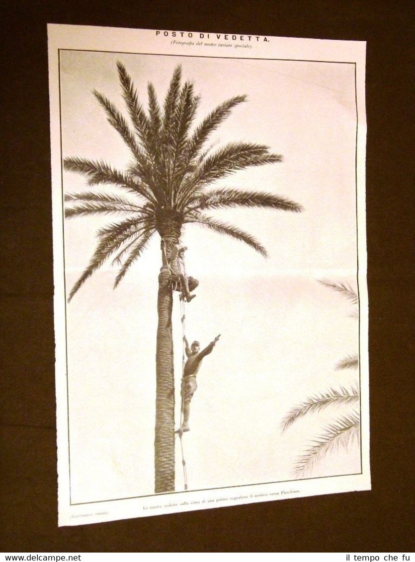 Rara Stampa Estratta da Rivista d'epoca del 1911 Spedizione d'Italia in Libia o Tripolitania nel 1911 Posto di vedetta nei dintorni di Fleschium II1911-052T Cm 24,00 x 34,00 Qualora vogliate delle scansioni migliori contattateci, soddisferemo ogni vostra richiesta. Paypal Carta di credito Bonifico bancario Accuratamente adagiate su un cartoncino e protette da pellicola trasparente rigida il tutto viene inserito dentro plico di adeguate dimensioni per proteggerne l'integrità