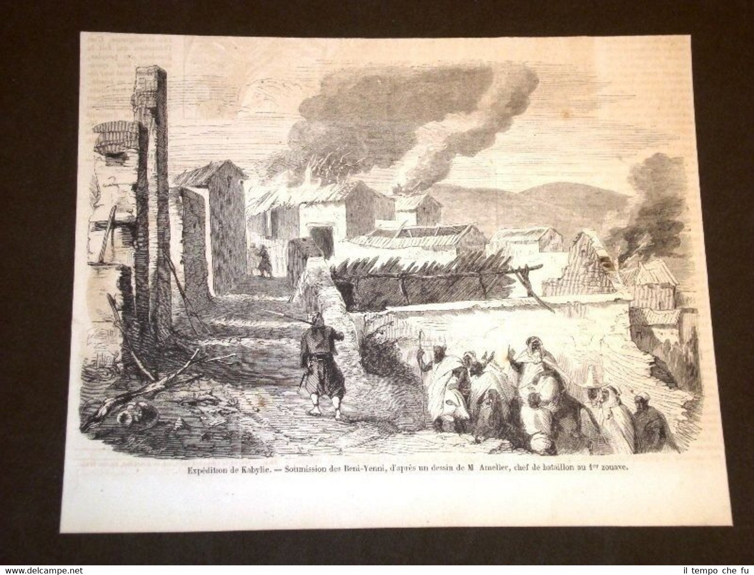 Rara Stampa Estratta da Rivista d'epoca del 1857 Spedizione in Cabilia nel 1857 Presentazione del Beni Yenni Capo degli Zuavi MI1857-006T Dimensioni Cm 24,00 x 19,50 Qualora vogliate delle scansioni migliori contattateci, soddisferemo ogni vostra richiesta. Paypal Carta di credito Bonifico bancario Accuratamente adagiate su un cartoncino e protette da pellicola trasparente rigida il tutto viene inserito dentro plico di adeguate dimensioni per proteggerne l'integrità