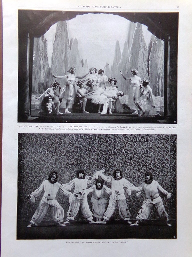 Stampa del 1925 Le Tre Fortune di Carlo Venerziani Costabile Teatro Moda Milano