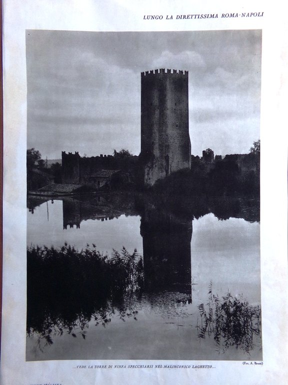 Stampa del 1927 Direttissima Roma Napoli Acquitrini Pontine Torre Ninfa