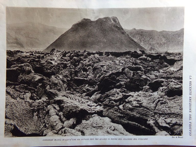 Stampa del 1927 Eruzione del Vesuvio Malandra Sannino Conetto Lava Cratere