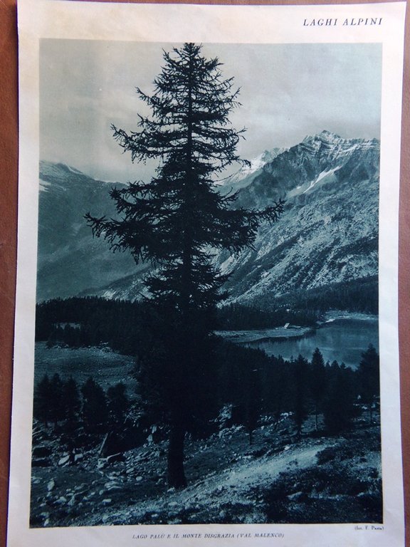 Stampa del 1927 Laghi Alpini Braies Alto Adige Palù Monte Disgrazia