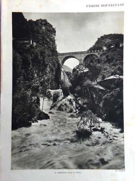 Stampa del 1927 Rovereto Cappella San Colombano Torrente Leno in piena