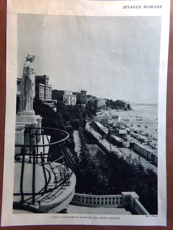 Stampa del 1927 Spiagge Romane Stabilimenti Anzio Nettuno Fregene