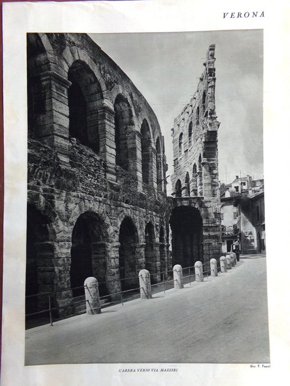 Stampa del 1927 Verona Arena Via Mazzini Piazza Erbe Torre Lombardi