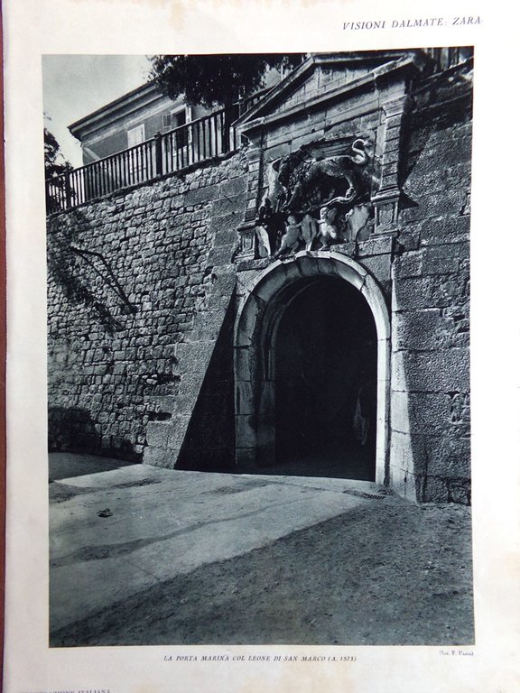 Stampa del 1927 Visioni Dalmate Zara Porta San Rocco Marina Leone San marco
