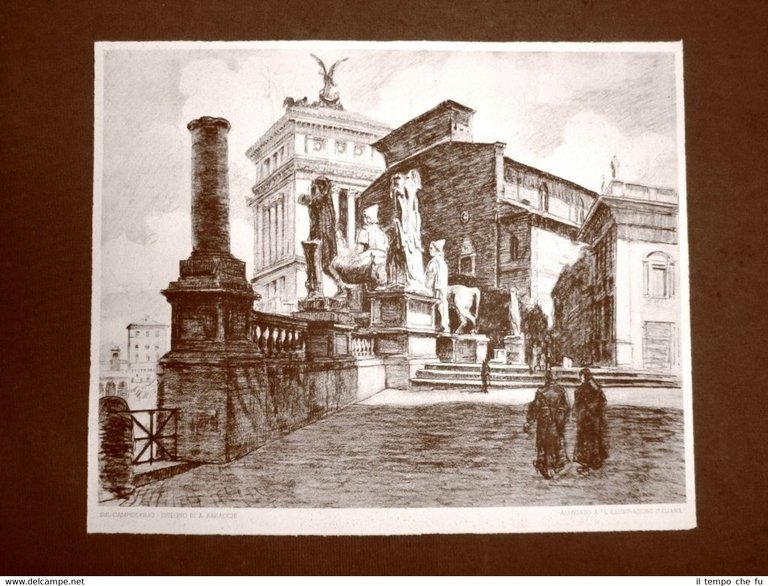 Stampa del 1930 Sul Campidoglio Roma Disegno di A. Baracchi
