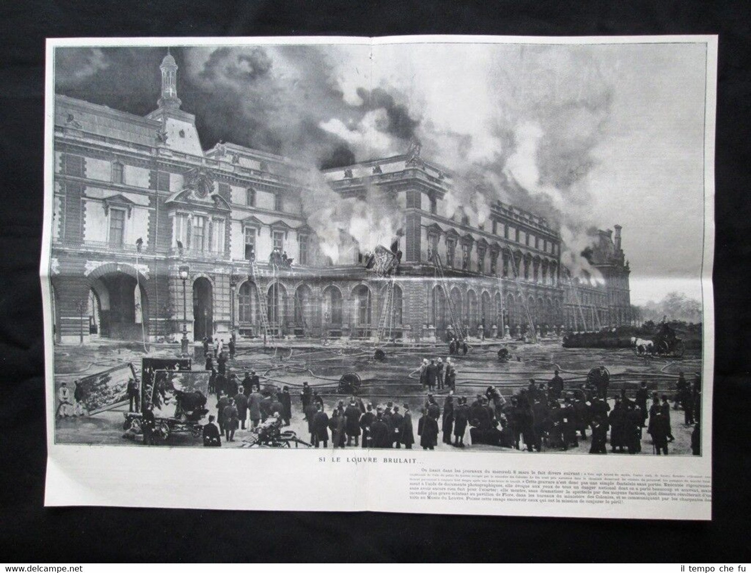 STAMPA ENORME! Incendio al Museo del Louvre di Parigi, 8 marzo 1905