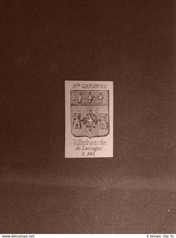 Stemma o blasone della città Villefranche de Lauragais Francia Tratto da un'opera d'araldica del 1865 Araldica-036 Dimensioni Cm 2,00 x 3,00 Qualora vogliate delle scansioni migliori contattateci, soddisferemo ogni vostra richiesta. PaypalCarta di creditoBonifico bancario Accuratamente adagiate su un cartoncino e protette da pellicola trasparente rigida,il tutto viene inserito dentro plico di adeguate dimensioni per proteggerne l'integrità.