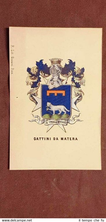Stemma Gattini di Matera Famiglia nobile Cromolitografia 1880 Annuario nobiltà