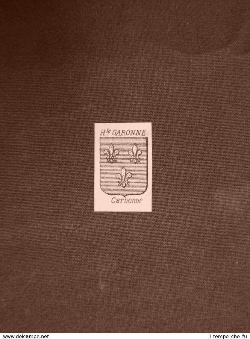 Stemma o blasone della città di Carbonne - Francia Anno 1865 Araldica
