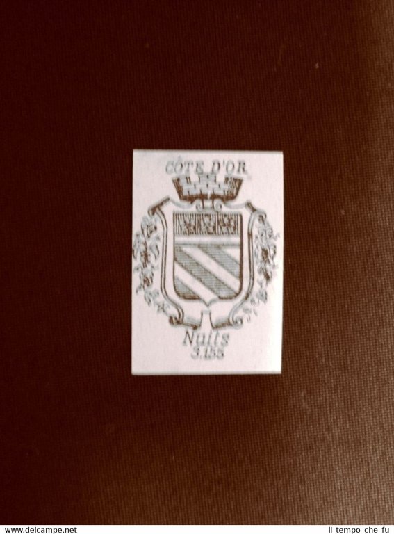 Stemma o blasone della città Nuits Francia Tratto da un'opera d'araldica del 1865 Araldica-020 Dimensioni Cm 2,00 x 3,00 Qualora vogliate delle scansioni migliori contattateci, soddisferemo ogni vostra richiesta. PaypalCarta di creditoBonifico bancario Accuratamente adagiate su un cartoncino e protette da pellicola trasparente rigida,il tutto viene inserito dentro plico di adeguate dimensioni per proteggerne l'integrità.