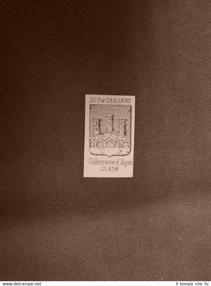 Stemma o blasone della città di Villeneuve d'Agen - Francia Anno 1865 Araldica