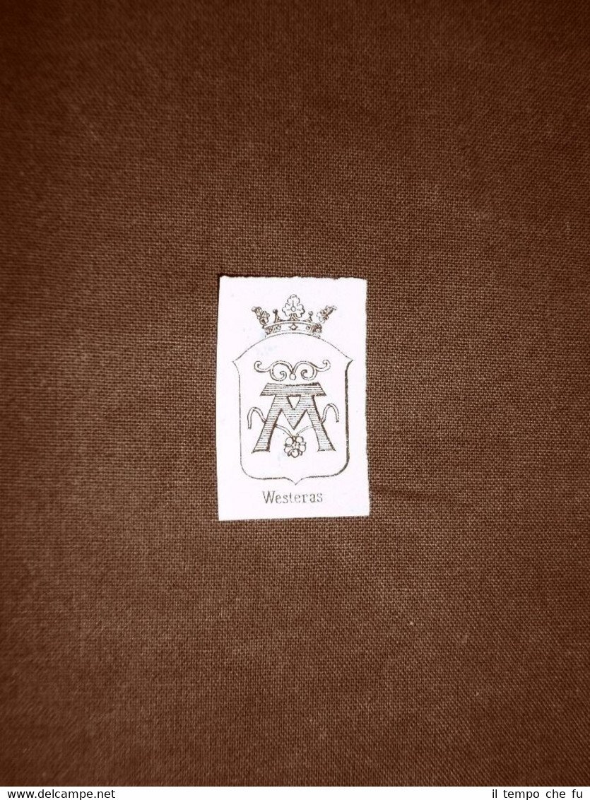 Stemma o blasone della città Westeras Svezia Tratto da un'opera d'araldica del 1865 Araldica-018 Dimensioni Cm 2,50 x 3,50 Qualora vogliate delle scansioni migliori contattateci, soddisferemo ogni vostra richiesta. PaypalCarta di creditoBonifico bancario Accuratamente adagiate su un cartoncino e protette da pellicola trasparente rigida,il tutto viene inserito dentro plico di adeguate dimensioni per proteggerne l'integrità.
