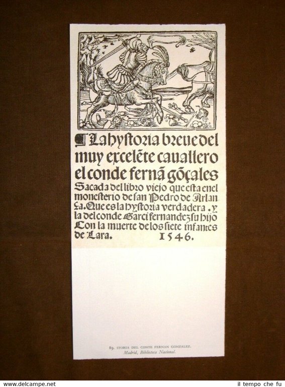 Stampa estratta da pubblicazione di metà '900 Storia del Conte Fernan Gonzalez Madrid Spagna Arte popolare spagnola STAPO - 018 Dimensioni Cm 13,00 x 27,00 Qualora vogliate delle scansioni migliori contattateci, soddisferemo ogni vostra richiesta. Paypal Carta di credito Bonifico bancario Accuratamente adagiate su un cartoncino e protette da pellicola trasparente rigida, il tutto viene inserito dentro plico di adeguate dimensioni per proteggerne l'integrità.