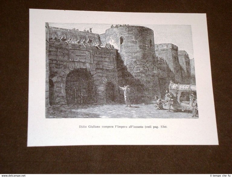 Storia di Roma Didio Giuliano compra Impero all'incanto Incisione di L.Pogliaghi