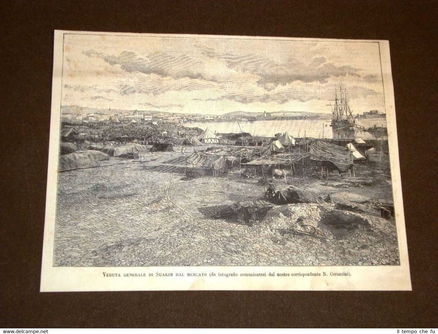 Rara Incisione Estratta da Rivista d'epoca del 1889. .incisione che ha quindi oltre 125 anni! Suakin o Sawakin nel 1889 Veduta generale dal mercato Mar Rosso II1889-009 Dimensioni Cm 23,00 x 18,00 Qualora vogliate delle scansioni migliori contattateci, soddisferemo ogni vostra richiesta. PaypalCarta di creditoBonifico bancario Accuratamente adagiate su un cartoncino e protette da pellicola trasparente rigida,il tutto viene inserito dentro plico di adeguate dimensioni per proteggerne l'integrità.