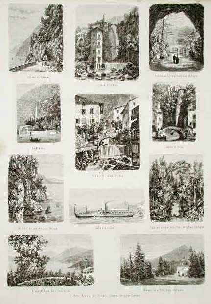 Undici piccole vedute del lago: Varenna, Bellagio, Nesso, Fiume Latte . Testo al verso non inerente