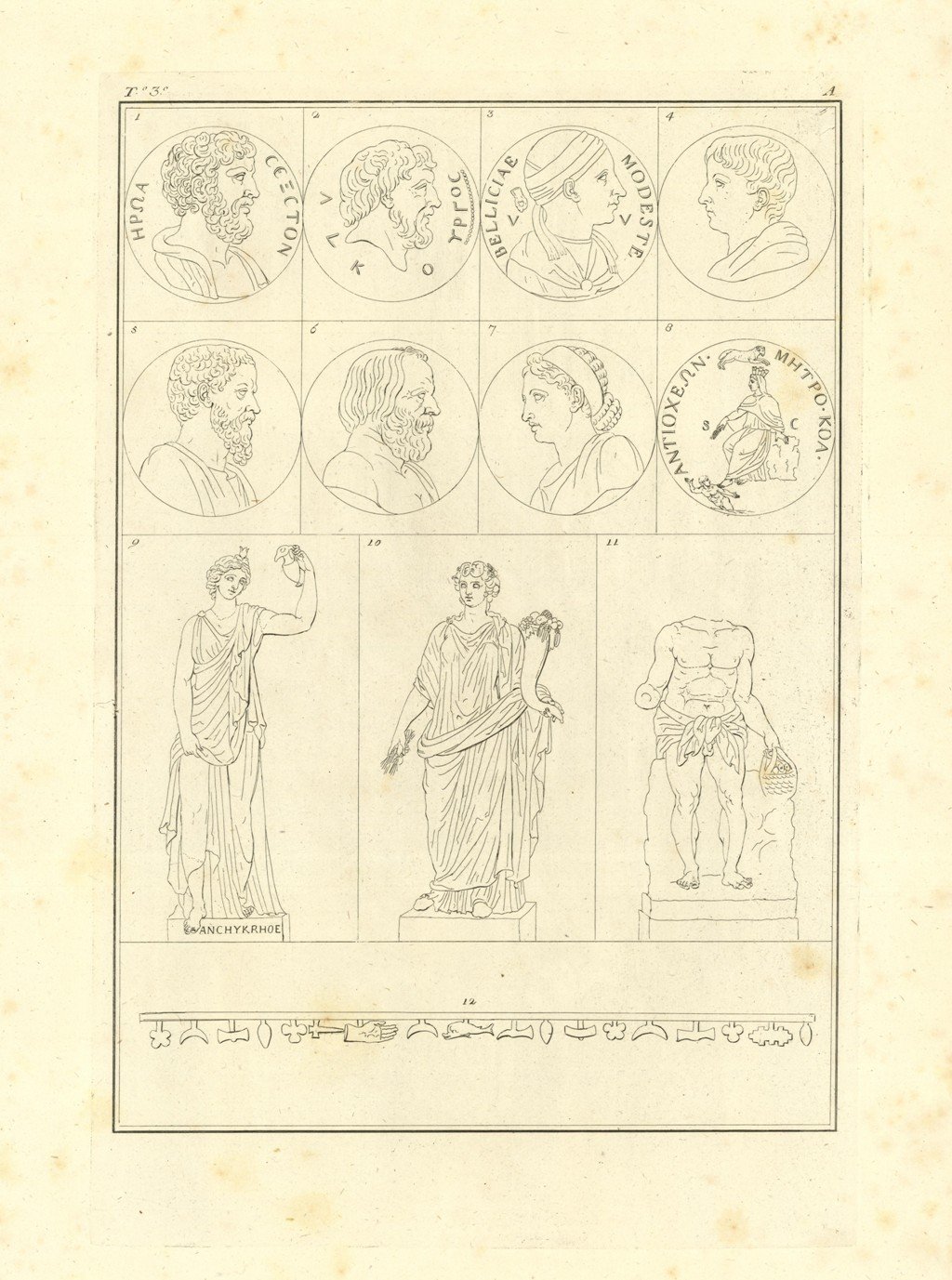 Inserita nell'opera "Il Museo Pio-Clementino descritto da Ennio Quirino Visconti - Tomo terzo - Dedicato alla Santità di Nostro Signore PIO SESTO Pontefice Massimo. Edito da Luigi Mirri / Mercante di quadri incontro il Palazzo Bernini. In Roma MDCCLXXXIV con Privilegio Pontificio. Foxing