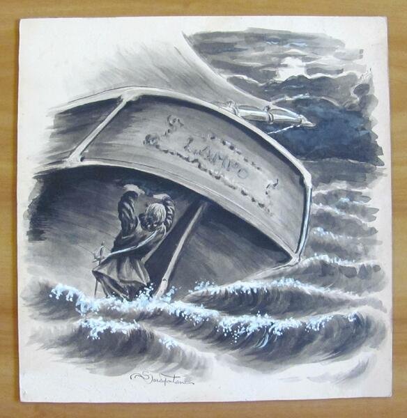 Tavola originale di SARDOFONTANA noto illustratore Salgariano - primi '900 - Firmata