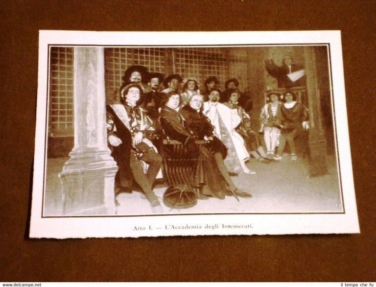 Rara Stampa Estratta da Rivista d'epoca del 1911 Teatro nel 1911 La Prima del Mantellaccio di Sem Benelli Atto I: L'accademia degli Intemerati II1911-013T Cm 16,00 x 12,00 Qualora vogliate delle scansioni migliori contattateci, soddisferemo ogni vostra richiesta. Paypal Carta di credito Bonifico bancario Accuratamente adagiate su un cartoncino e protette da pellicola trasparente rigida il tutto viene inserito dentro plico di adeguate dimensioni per proteggerne l'integrità