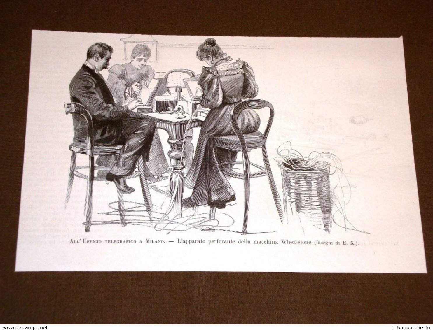 Rara Incisione Estratta da Rivista d'epoca del 1893 Telegrafo e telegrafisti nel 1893 Ufficio di Milano Apparato perforante Wheatstone II1893-024 Dimensioni Cm 23,00 x 15,00 Qualora vogliate delle scansioni migliori contattateci, soddisferemo ogni vostra richiesta. Paypal Carta di credito Bonifico bancario Accuratamente adagiate su un cartoncino e protette da pellicola trasparente rigida, il tutto viene inserito dentro plico di adeguate dimensioni per proteggerne l'integrità.