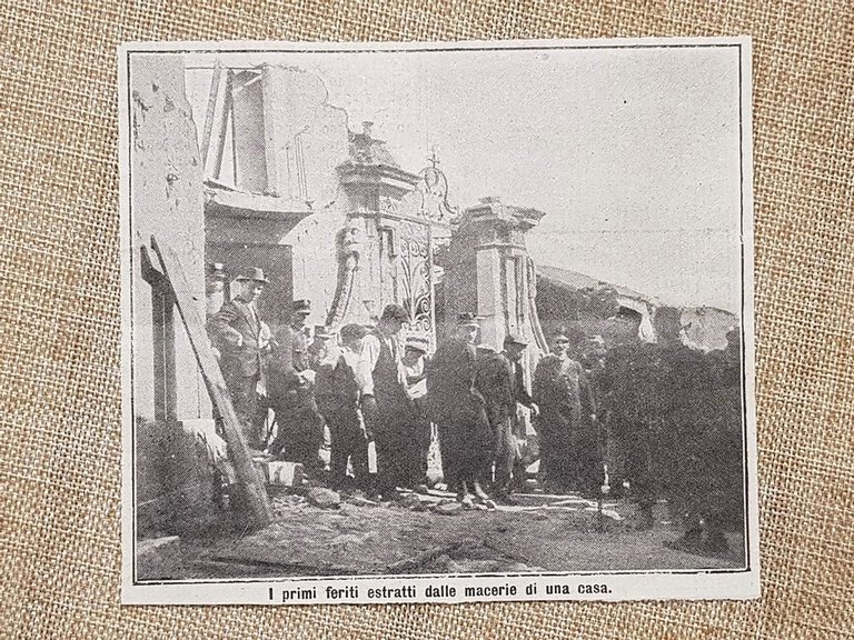 Terremoto tra Linera ed Acireale nel 1914 I primi feriti estratti dalle macerie Rara stampa estratta da pubblicazione del 1914 Il terremoto tra Linera ed Acireale nel 1914 I primi feriti estratti dalle macerie Sicilia Codice prodotto: VIP-188 Dimensioni Cm 12,00 x 11,00