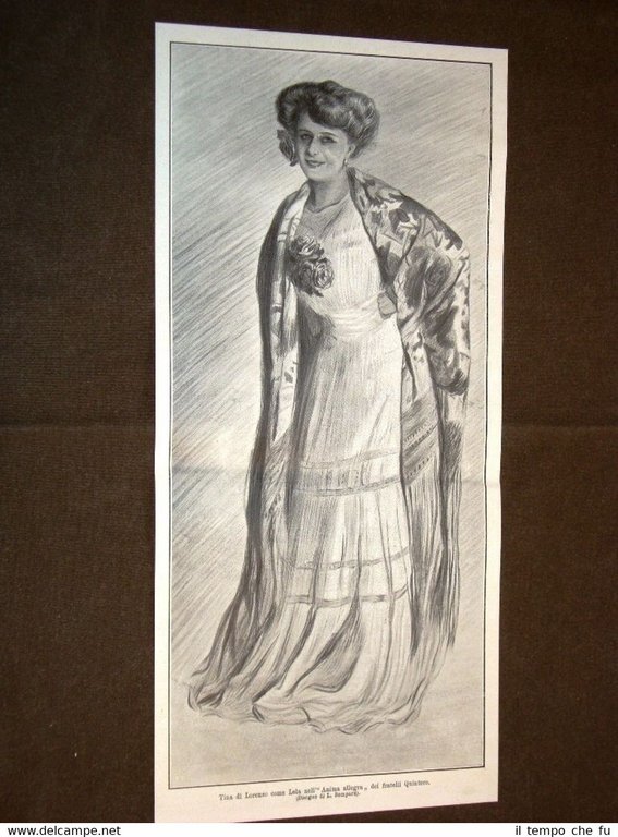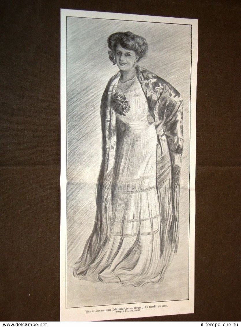Rara Stampa Estratta da Rivista d'epoca del 1909 Tina di Lorenzo in Lola nell'Anima allegra dei Fratelli Quintero II1909-043T Cm 16,00 x 35,00 Qualora vogliate delle scansioni migliori contattateci, soddisferemo ogni vostra richiesta. Paypal Carta di credito Bonifico bancario Accuratamente adagiate su un cartoncino e protette da pellicola trasparente rigida il tutto viene inserito dentro plico di adeguate dimensioni per proteggerne l'integrità