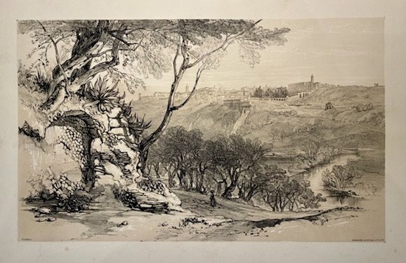 Litografia originale in tonalità seppia (cm. 41,3x25 più ampi margini bianchi) tratta dall’opera ‘Views of Rome and its Environs’. Esemplare in ottimo stato di conservazione. Non comune.‘Views of Rome and its Environs’ è sicuramente l’opera di viaggio più importante realizzata dallo scrittore e artista inglese Edward Lear assieme alle ‘Illustrated excursions in Italy’ del 1846 ed ai ‘Journals of a Landscape Painter in Southern Calabria and the Kingdom of Naples’ (1852). Le belle tavole, di gusto romantico, raffigurano scorci inconsueti della città di Roma e piccoli borghi e paesi dei suoi dintorni. La Regina Vittoria, impressionata dalla bellezza delle litografie, chiese all’autore di farle da insegnante di disegno per un paio di mesi presso la residenza di Osborne House.