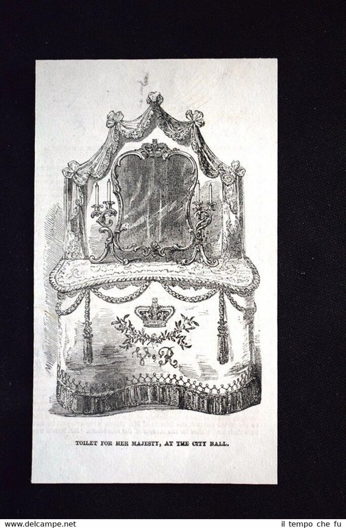 Rara incisione estratta da pubblicazione del 1851. .incisione che ha quindi oltre 167 anni! Toilette di sua Maestà, al Municipio Dimensioni Cm 8,00 x 15,00 ILN1851 - 29 Qualora vogliate delle scansioni migliori contattateci, soddisferemo ogni vostra richiesta. Paypal Carta di credito Bonifico bancario Accuratamente adagiate su un cartoncino e protette da pellicola trasparente rigida, il tutto viene inserito dentro plico di adeguate dimensioni per proteggerne l'integrità.