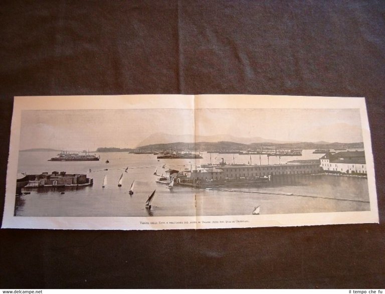 Rara Stampa Estratta da Rivista d'Epoca Tolone nel 1901 Veduta della Rada e uscita del Porto presa dal Quai di Cronstadt II1901-012T Dimensioni Cm 50,00 x 18,00 Qualora vogliate delle scansioni migliori contattateci, soddisferemo ogni vostra richiesta. Paypal Carta di credito Bonifico bancario Accuratamente adagiate su un cartoncino e protette da pellicola trasparente rigida il tutto viene inserito dentro plico di adeguate dimensioni per proteggerne l'integrità