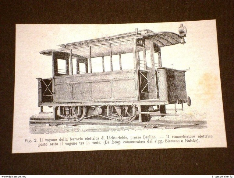 Rara Incisione Estratta da Rivista d'epoca del 1881 Treni e ferrovie nel 1881 Vagone della ferrovia elettrica di Lichterfelde di Berlino Rimorchiatore elettrico II1881-010T Cm 15,00 x 10,00 Qualora vogliate delle scansioni migliori contattateci, soddisferemo ogni vostra richiesta. Paypal Carta di credito Bonifico bancario Accuratamente adagiate su un cartoncino e protette da pellicola trasparente rigida il tutto viene inserito dentro plico di adeguate dimensioni per proteggerne l'integrità