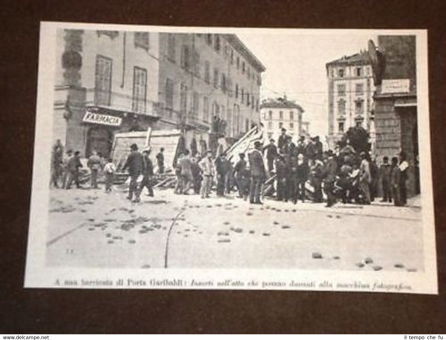 Rara Stampa Estratta da Rivista d'Epoca di fine '800 Tumulti di Milano Barricata a Porta Garibaldi IP1898-017T Dimensioni Cm 18,00 x 12,50 Qualora vogliate delle scansioni migliori contattateci, soddisferemo ogni vostra richiesta. Paypal Carta di credito Bonifico bancario Accuratamente adagiate su un cartoncino e protette da pellicola trasparente rigida il tutto viene inserito dentro plico di adeguate dimensioni per proteggerne l'integrità