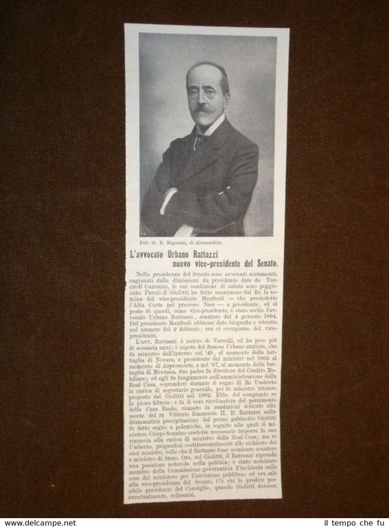 Rara Stampa Estratta da Rivista d'epoca del 1908 Urbano Rattazzi d'Alessandria nel 1908 Vice Presidente del Senato II1908-013T Dimensioni Cm 8,00 x 23,00 Qualora vogliate delle scansioni migliori contattateci, soddisferemo ogni vostra richiesta. Paypal Carta di credito Bonifico bancario Accuratamente adagiate su un cartoncino e protette da pellicola trasparente rigida il tutto viene inserito dentro plico di adeguate dimensioni per proteggerne l'integrità
