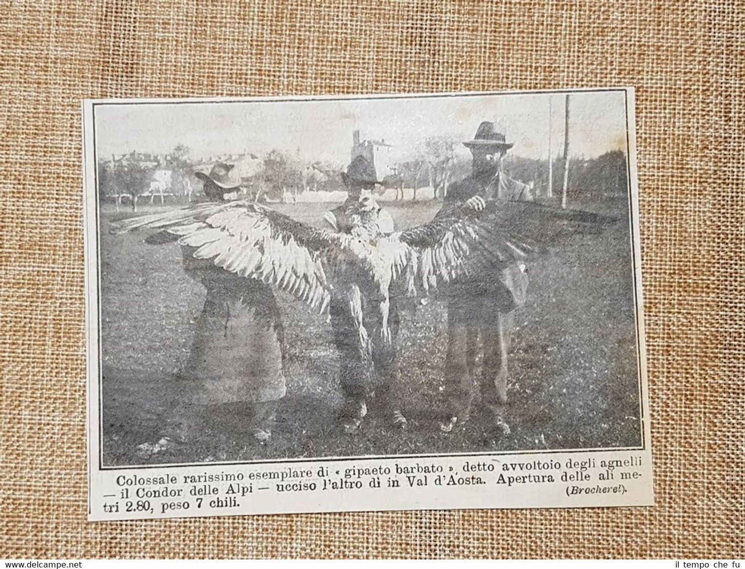 Val d'Aosta nel 1913 Raro esemplare di gipaeto barbato o avvoltoio degli agnelli