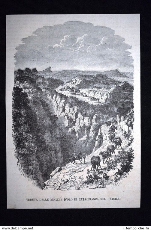 Rara incisione estratta da pubblicazione del 1867. .incisione che ha quindi oltre 150 anni! Veduta delle miniere d'oro di Cata-Branca in Brasile Dimensioni Cm 17,00 x 24,00 EP1867 - 001 Qualora vogliate delle scansioni migliori contattateci, soddisferemo ogni vostra richiesta. Paypal Carta di credito Bonifico bancario Accuratamente adagiate su un cartoncino e protette da pellicola trasparente rigida, il tutto viene inserito dentro plico di adeguate dimensioni per proteggerne l'integrità.