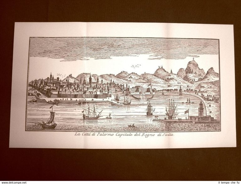 Veduta La città di Palermo Capitale Regno di Sicilia Incisione del '600 Ristampa