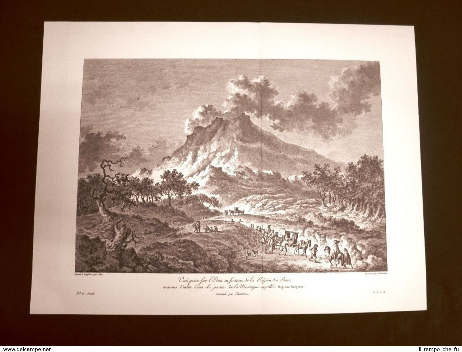 Grande litografia Stampata su carta speciale e non retroscritta Ristampa anni '50 di una celebre tavola facente parte della rara opera del 1785 "Voyage Pittoresque ou description des Royaumes de Naples et de Sicile" Scritta dall'Abate Jean Claude Richard de Saint - Non Veduta della sommità del Vulcano Etna Regione dei Buoi e Regione Scoperta Catania Sicilia Saint-Non - 005 Dimensioni Cm 36,00 x 27,00 Jean-Claude Richard de Saint-Non, meglio noto come Abate di Saint-Non, o Abbé de Saint-Non (Parigi, 1727 - 25 novembre 1791), è stato un incisore, disegnatore, umanista, nonché archeologo, mecenate e viaggiatore francese. Egli fu destinato dalla famiglia alla vita religiosa e per questa ragione nel 1749 poté anche entrare nel parlamento di Parigi. Per la sua opposizione alla bolla Unigenitus fu esiliato a Poitiers. Tra il 1759 ed il 1761 visitò l'Inghilterra e successivamente l'Italia, rimanendo particolarmente impressionato dal Sud Italia, soprattutto dalla Calabria e dalla Sicilia. Scrisse un'opera enciclopedica illustrata da lui stesso intitolata Voyage pittoresque ou Description des Royaumes de Naples et de Sicile, dove riporta resoconti ed impressioni da lui raccolte tra il 1781 ed il 1786. Questa sua opera è stata illustrata con disegni dei migliori artisti, in parte riprodotti proprio dallo stesso Saint-Non. Qualora vogliate delle scansioni migliori contattateci, soddisferemo ogni vostra richiesta. PaypalCarta di creditoBonifico bancario La litografia verrà arrotolata e spedita con tubo postale o plico di adeguate dimensioni per proteggerne l'integrità.