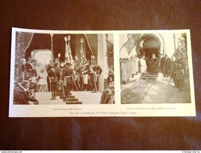 XXV° anniversario di Plewna nel 1902 Distribuzione bandiere e Re Rumenia Briviza