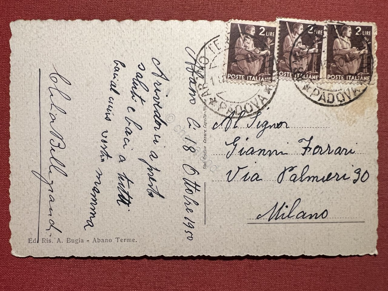 Cartolina - Abano Terme ( Padova ) - Albergo Terme Villa Pace - 1950