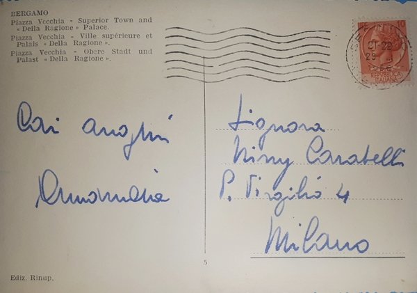 Cartolina - Bergamo - Piazza Vecchia - Palazzo della Ragione - 1956