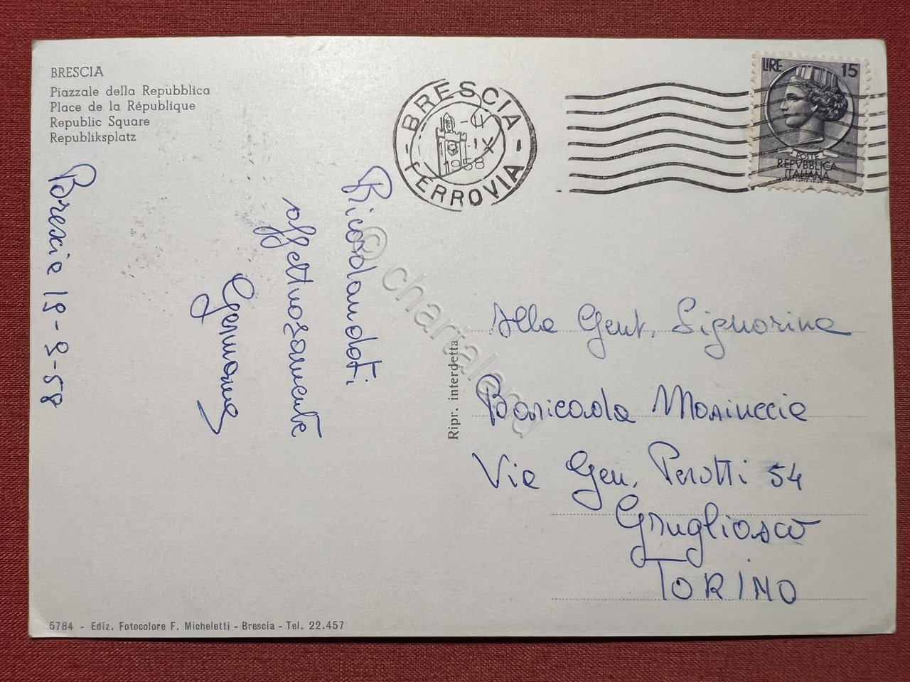 Cartolina - Brescia - Piazzale della Repubblica - 1958